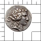 Kopf des Dionysos mit Efeukranz nach r.