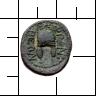 OPΘAΓO/PEΩN.. Ein Helm mit Wangenklappen von vorn. Darüber ein Stern.
