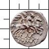 Kopf der Roma mit Helm nach r. Dahinter X; Perlkreis. |