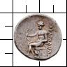 AKAPNANΩN. Apollo Aktios sitzt auf Thron nach l., in der r. Hand einen Bogen haltend. |