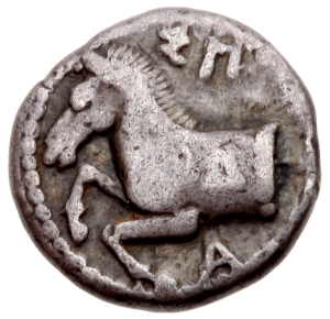 Vorderseite: ΣΠ-Α. Vorderteil eines springenden Pferdes nach l.