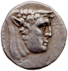 Vorderseite: [Reste des Magistratsnamens ΛYKOYPΓOΣ aufwärts?]. Kopf des Flussgottes Acheloos nach r.