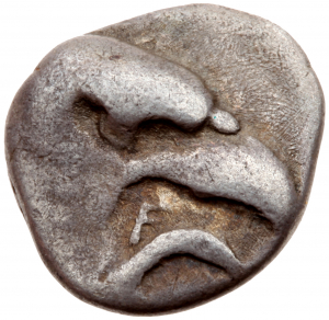 Literatur: Vgl. Coins of Olympia. The BCD Collection, Leu Auktion 90 vom 10. Mai 2004 Nr. 84 (dort ohne Olivenkranz). Vgl. zur Datierung C. T. Seltman, The Temple Coins of Olympia (1921) 54 f. (Hemidrachme, Series XVII-XVIII, ca. 421-365 v. Chr.).