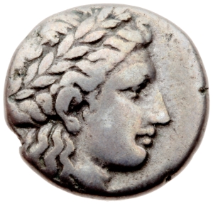 Vorderseite: Kopf des Apollon mit Lorbeerkranz nach r.