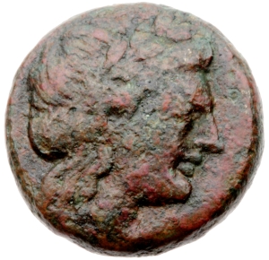 Vorderseite: Kopf des Apollon mit Lorbeerkranz nach r.